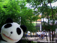 階段をおりていくと 公園の緑に包まれて いただきます♪ 森の中でお食事しているようです♪