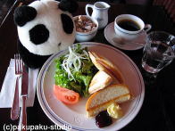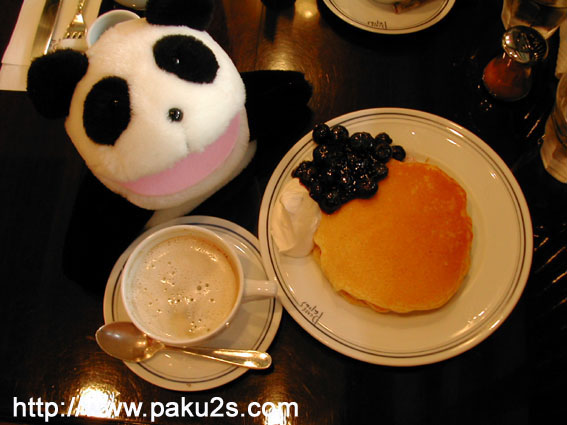 たくさんのケーキに目移りしそう。フレッシュブルーベリーどっさりのパンケーキがパンダのお気に入りです。