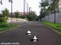 歩くことに目覚めたpanser。朝起きたらいい天気だったのでパンダさん2人をお供にお散歩することにしました。目指すは港北ニュータウンのセンター北。距離にして約5Km程度(かな?)。ルートは青葉台から市ヶ尾に出て、荏田西〜鴨池公園〜センター南〜センター北です。荏田西からは港北ニュータウンのひとつの特徴でもある“緑道”を通り、青空と緑を満喫しながら歩きました♪AM8:30出発