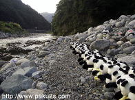 | 71匹ぱんちゃんがいく〜川の流れのように 2004年9月19日(日)晴れ 早朝 場所:神奈川県山北町の河原 | |