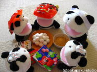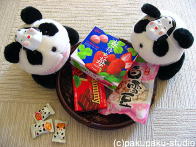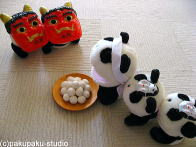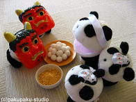 春のおかしをもらったよ♪ そのおかしをこっちによこしなさい! 鬼さんに持っていかれました〜! (鬼退治のしたくをしましょう…)