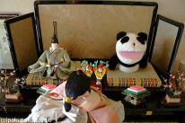 パンダ子さんお雛さまですよ♪ …。 納得いきませんわ! あなた、おどきになってくださる? お内裏様はわたくしのものですわ♪