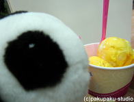パンダはアイスが好きです 最近のアイスは派手ですねえ…(オレンジにむらさき…) うふん♪(撮影:Piro)