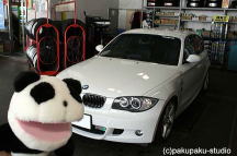 車をきれいに洗ってもらっています! ハイオクも満タンです! 準備OK!