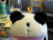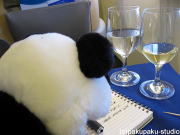 白黒田、出張にまいります 機内でもお仕事がんばりまっせ! (ガリガリ…)