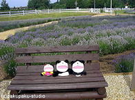 ラベンダーフェスティバルにきていますラベンダーの小道でまったり いいにほひ… これで刈り入れするんだって。