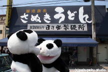 パンさん、着きました!! この、老舗のうどん屋さんです!! (良くやった、Gパンダ!) |