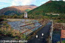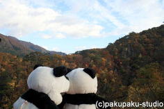 | 「Gパンダ、犯人は ここ、鳴子峡にきたという情報だな!」 「はい、パンさん!」 |