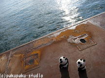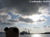 (俺と兄貴のヨ〜♪) 年を越したパンダ兄弟です そして元旦の朝→ 港にはだれもいないなあ… すたすたすたすた… 兄貴ぃ、海が光っています! 雲が晴れてきたぞパンダ郎! 今年もがんばろうな!ガッテンだ兄貴ぃ♪