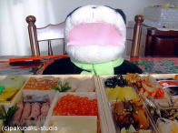 (小さい頃ジョアの鐘と思ってました。byヤクルト)おぉ!あんこ餅とお雑煮ですね! 僕はおせちをいただきます! ひゃ〜ご馳走だぁ♪♪