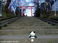 晴天のお正月 階段がキツイです 榴ヶ岡天満宮にきました なで牛君をナデナデ 願い事を絵馬に書きましょう 今年も平和でありますように…