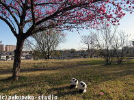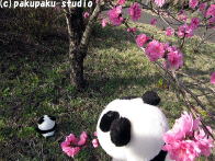 あっ♪ どしたんですか? あっちにピンクの木があります〜! いってみましょう♪ きれいですね〜 登ってみましょう♪ とう! 春じゃ春じゃ〜♪
