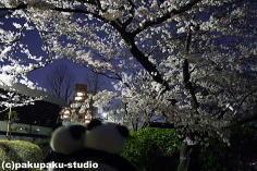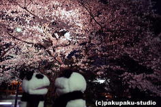 ささ、パンダ子さんこちらですよ♪ 夜桜はきれいですね♪ え!おなかすいた・・・!?