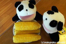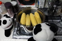 お!これは大好物のとうもろこしさんですね! お湯でゆでましょう♪ いただきま〜す!