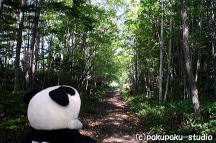・・・ さ、ロケットパンダ号、出動だぁ! 着きましたよ皆さん、あっちです パンダ出没!(フフフ・・・) この小道を行くのですね ・・・・・ あれがタウシュベツ川橋梁ですよ。