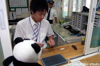 (早くしないと乗り遅れるよ〜)あった!スタンプ♪ んしょ、んしょ・・・ できた! さ、列車に乗りましょう♪ パンダの子供1枚ください あ、行っちゃった!