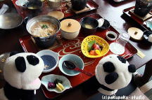 秋保温泉(あきう)にやってきました! まま、お茶でもいっぷく♪ おぉ!趣のある温泉です プカプカ ひゃ〜、いいね〜 さ、おしょくじです! おぉ!これは!! おいしそう!