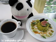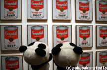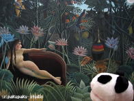 美術館散策をしましょう「パンダと楽園」 MOMAといえばコーンスープですね♪ …パンダ子おなかがすいてきました カフェでケーキをいただきまーす 雨、小降りになってきました♪ パンダ子さん、次はこっちです このお屋敷にはフェルメールの