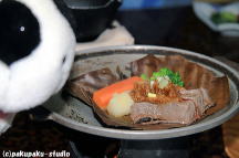(このための貸切風呂!)いや〜温泉ホテルの楽しみのひとつ、豪華な夕食ですね うわ〜飛騨牛の上に朴葉味噌♪ ・・・