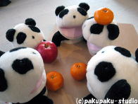 あっ! あそこにのらぱんだがいます! …のら夫くん!! のら美じゃないか!元気だったか? うちでおみかんを食べませんか? こうしてのらぱんだはまた一匹、