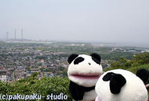 えっほ! えっほ! ふへ〜っ! ついた〜! きゃ〜絶景だ〜! パンダ子さん、アッチが東京湾です♪ (ロケ地:千葉県君津市人見神社)