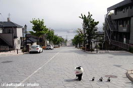 (あ、でかさん!!)ここはね、八幡坂っていうんだよ