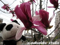 基準枝は昨年剪定されていましたあっ! 少し咲いています! (でっかいモクレンは盛りです♪)