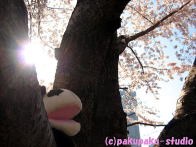 よいしょ、よいしょ 今日はどうかしら さて、八幡山の桜は… 満開でーす! よいしょっと わあ〜 去年までの基準枝が