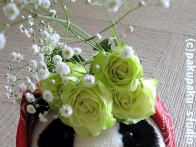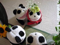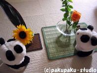 しん・そえ・たえ… …これでいいかしら パンダ美さんのひまわりもすてきですわ♪ ……♪ かわいく生けられました♪