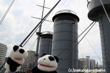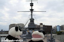 2011年9月23日(金) はれ 東郷パン八郎元帥と秋山パン之中佐 (ロケ地:横須賀市 戦艦三笠)