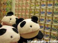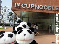 カップヌードルミュージアムにやってきました! 百福さんと偉人さんとパンダたち… おお…カップヌードルがいっぱいだ! こんなに昔からあるんですね… メインイベントは