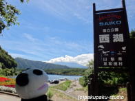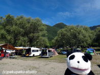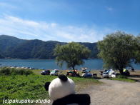西湖のキャンプ場に来ました おぉ!あそこだ! 車でキャンプにきてますね 僕も来年こそは!