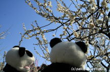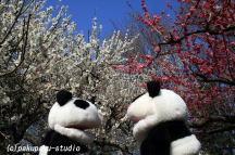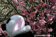 パンダ子さん、こっちですよ♪ きれいですわぁ 白梅ですね パンダ子はピンクも好きですわ♪ あ〜ん♪ いただきます♪