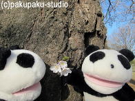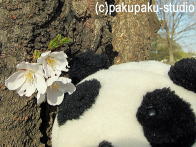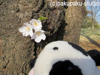 (パンダ子さん、こっち、こっち♪)桜がもう、咲いたのですか?