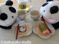(わぁ!)じーーーーー ぱくっ! パンダ子、おなかがすきましたわ〜 さくら餅、おしそうですわ〜♪