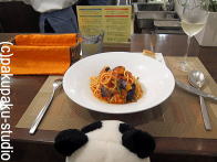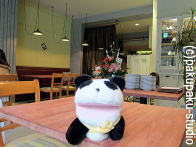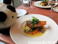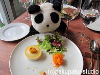 フレンチのビストロですよパンダ子さん♪お野菜の味を堪能しましょう。 パンダ子おさかなも好きですわ♪ 。。。そろそろお別れの時です… (熱い抱擁)