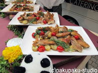 すごい人ごみです! おいしいアペリティフがたくさん! いただきまーす! くんくん…いい匂いがします… ホロホロ鳥のロースト♪ 楽しかったね!