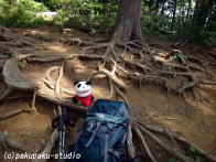 木陰は涼しいなぁ〜 フフンフフン♪ 山のぼりもラクチンだな♪ お!そろそろ山頂かぁ 富士山は見えないけど、景色いいなぁ そろそろお昼か、お腹も空きました♪ いただきまーす!