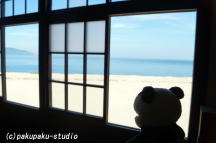 暑いです!!日よけにしてみました パンダ子さん、ここが僕の故郷です 白黒田さん、きれいなところですね パンダ子さん、気に入っていただけましたか
