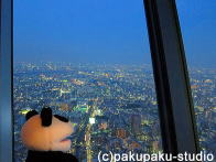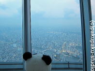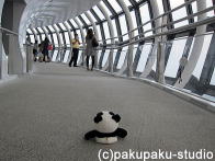 よし! まずは地上から350mの天望デッキへ… …350メートルでも十分高いです…。 いよいよ天望回廊へ向かいます! 雲の上にいるみたいです… 最高到達ポイント451mです! さあ、帰りましょう