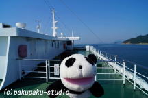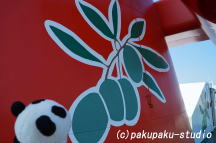 日の出です!ビッグダディの整体があった場所です 高松行きのフェリーに乗ります 約1時間の船旅です 瀬戸内海を渡る風が気持ちいい♪ オリーブのデザインですね♪ 遠くに四国が見えてきました!