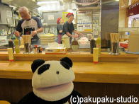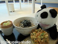 ビジネスパンダの朝は早い… 搭乗前に腹ごしらえだ! ごちそうさまでした……ん? お寿司もあるぞ♪