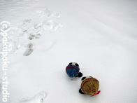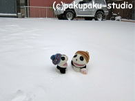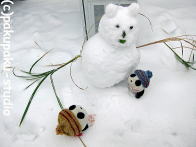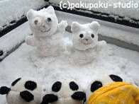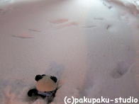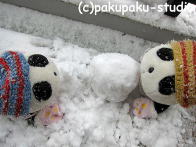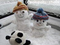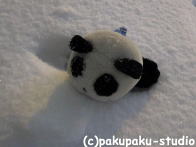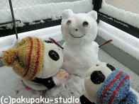 緊張しておりました…。お外はまっしろです。 足跡の方向に行ってみましょう あっ! りっぱな雪だるまさんです〜! ぱんだも雪だるまさんがほしいです!