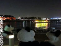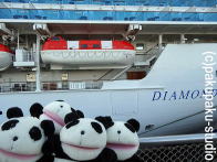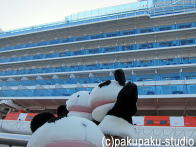 夏も元気なぱんだたちです! 大きな船〜! 船の影で大きな日陰になっています