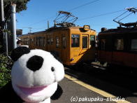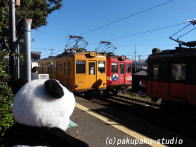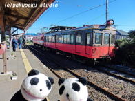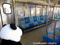 銚子電鉄の終着駅です かつての丸ノ内線の車両だ! 黄色いのもきました! ヒソヒソ・・・ あ! シートにアニメのキャラが描かれています! 来てよかった♪ 少し休憩です!