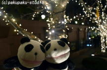こっち、こっち! 待ってましたよ! トナカイくんか! トナカイくん、「#%&@!」 着きましたよ、パンダ子さん! 白黒田さん、きれいですわ♪ 今年も見にくることができましたね、