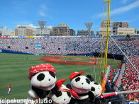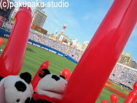カープぱんだヨコハマに見参! ヒ~ロシマ!あそれヒ~ロシマ! 今日は勝ち試合確定ね☆ そろそろ風船タイムよ~ ふーっふーっ。。 よし、飛ばすよ! わあああ~ あの子は~どこの子~