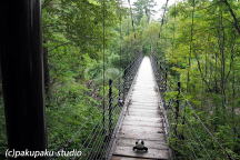 桧原湖トレッキング 熊鈴を鳴らしました 裏磐梯唯一の吊橋です キャンプ場もあるよ