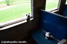 幸福駅にやってきました♪ 汽車まだかな♪ あ!来たよ!! ワクワク♪ どこに行くの?気分次第だよ! わぁ、畑がきれい♪