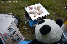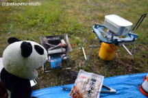 いい天気だなぁ 今日はここでキャンプをします! セイコマの塩ホルモンです♪ ご飯も炊きました♪